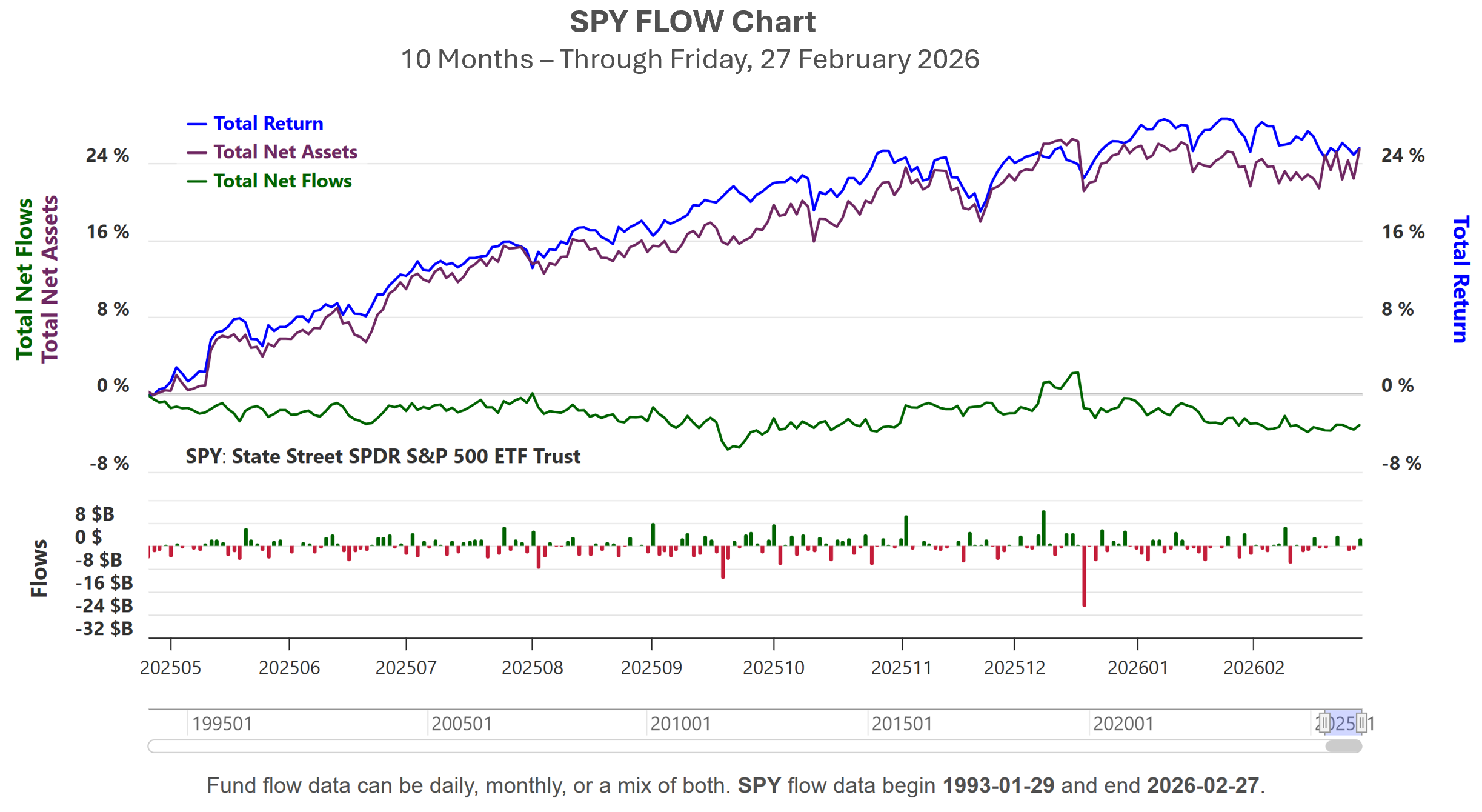 Performance updates are posted monthly, typically on first Saturday of the month. Month-to-date performance and other ancillary info, like holdings, are updated weekly. Flows are updated 1st and 3rd Saturday of the month, but our comprehensive FLOW tool updates daily.