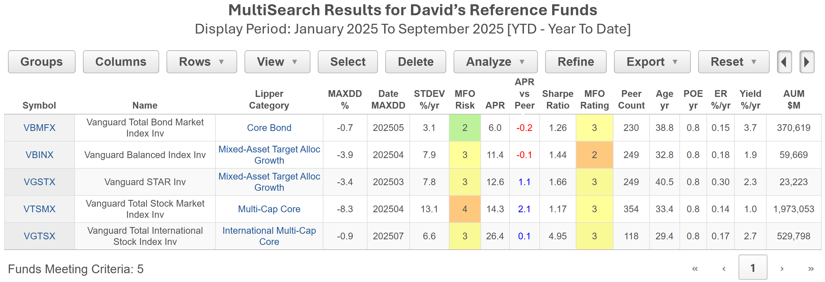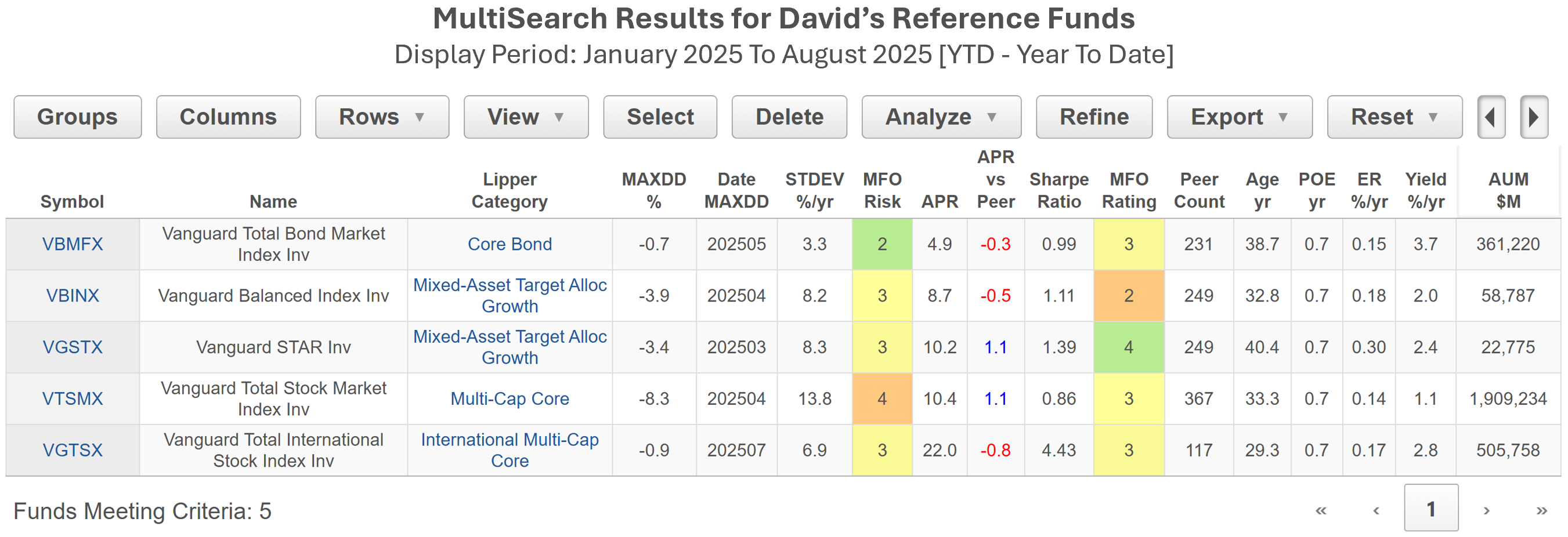 Create an account by clicking on LOGIN tab above. Access is granted automatically after email verification and PayPal portal payment. (You do not need a PayPal account to use the portal.) Writing a check also works. Drop us an email (david@mutualfundobserver.com) when the check is in the mail and we will access you pronto.