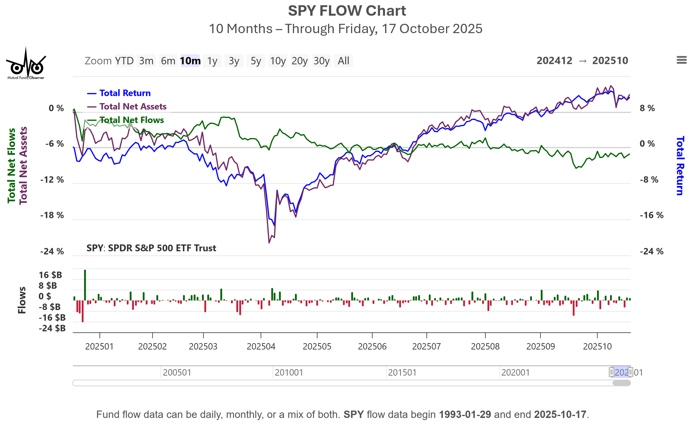 Performance updates are posted monthly, typically on first Saturday of the month. Month-to-date performance and other ancillary info, like holdings, are updated weekly. Flows are updated 1st and 3rd Saturday of the month, but our comprehensive FLOW tool updates daily.